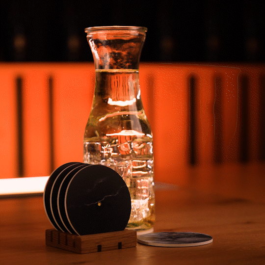 De verlichting van onze LED-onderzetters wordt automatisch geactiveerd zodra er een glas op de onderzetter wordt geplaatst, en schakelt uit wanneer het glas wordt verwijderd. Deze functie wordt geactiveerd door een druksensor.